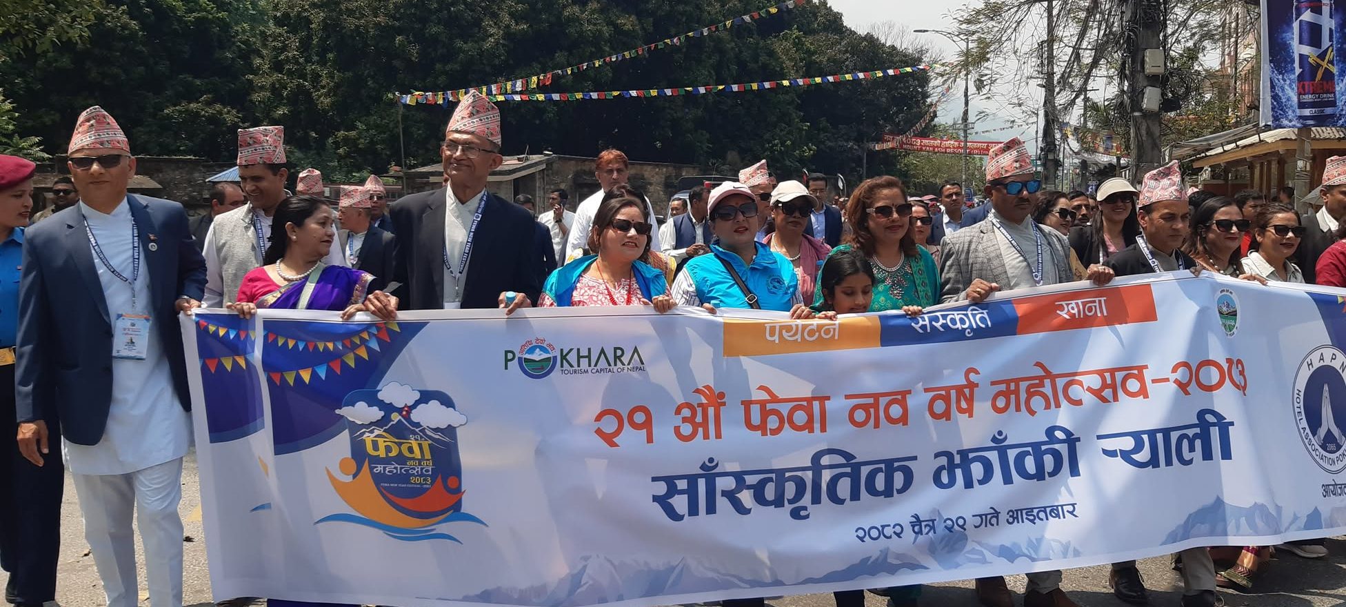 पोखरा, पर्यटकीय राजधानी पोखरामा सांस्कृतिक झाँकी र बाजागाजासहित २१ औं संस्करणको फेवा नवबर्ष महोत्सव -२०८३ आइतबारबाट सुरु भएको छ । कास्कीका प्रमुख जिल्ला अधिकारी रुद्रादेवी शर्माले पोखरा -६ लेकसाइडको अम्बोटमा आयोजित एक समारोहमा महोत्सवको उद्घाटन...