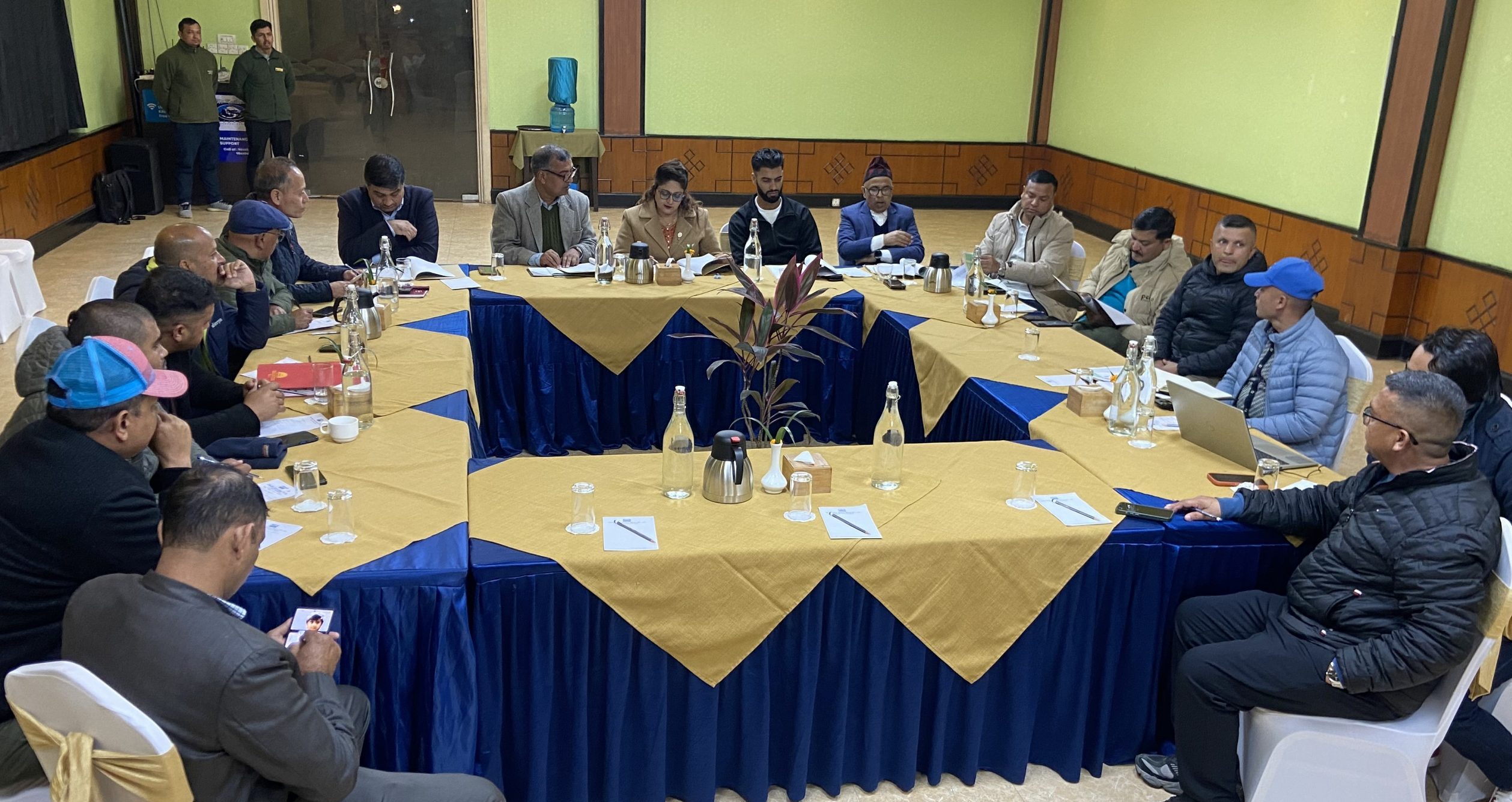 द क्लिफको प्रवेश मार्गमा द क्लिफका संचालक नेत्र पराजुलीसंगै गुरुकुल खबरका प्रधान सम्पादक गंगाधर पराजुली