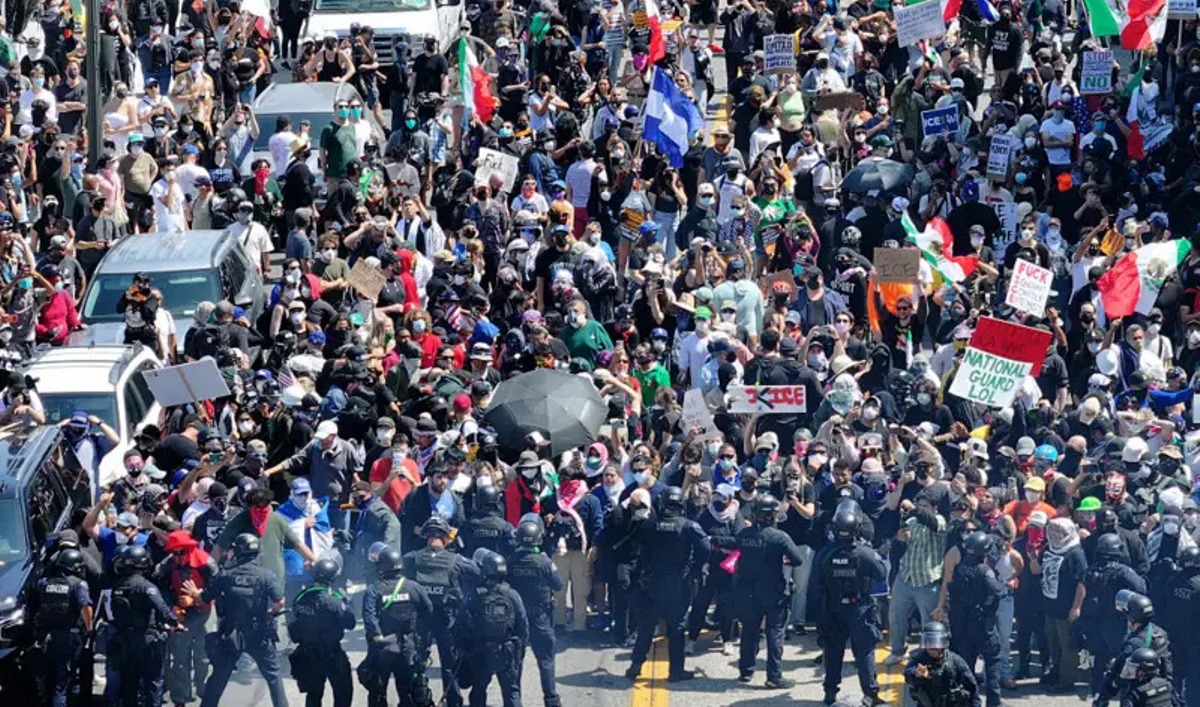 ल्याटिनो जनसंख्या बढी भएको क्षेत्रबाट अध्यागमन अधिकारीहरूले छापा मारेर ठूलो संख्यामा अवैध आप्रवासीलाई पक्राउ गरेपछि विरोध प्रदर्शन सुरु भएका हुन् ।  लस एन्जलसबाहेक धेरै सहरमा विरोध प्रदर्शन र जुलुसहरू सुरु भएका छन् । अमेरिकाको दोस्रो ठूलो सहर लस एन्जलसका प्रभावित क्षेत्रहरूमा धेरै सवारी साधनमा आगजनी गरिएको रिपोर्ट छ र धेरै ठाउँमा लुटपाट पनि भएको छ ।