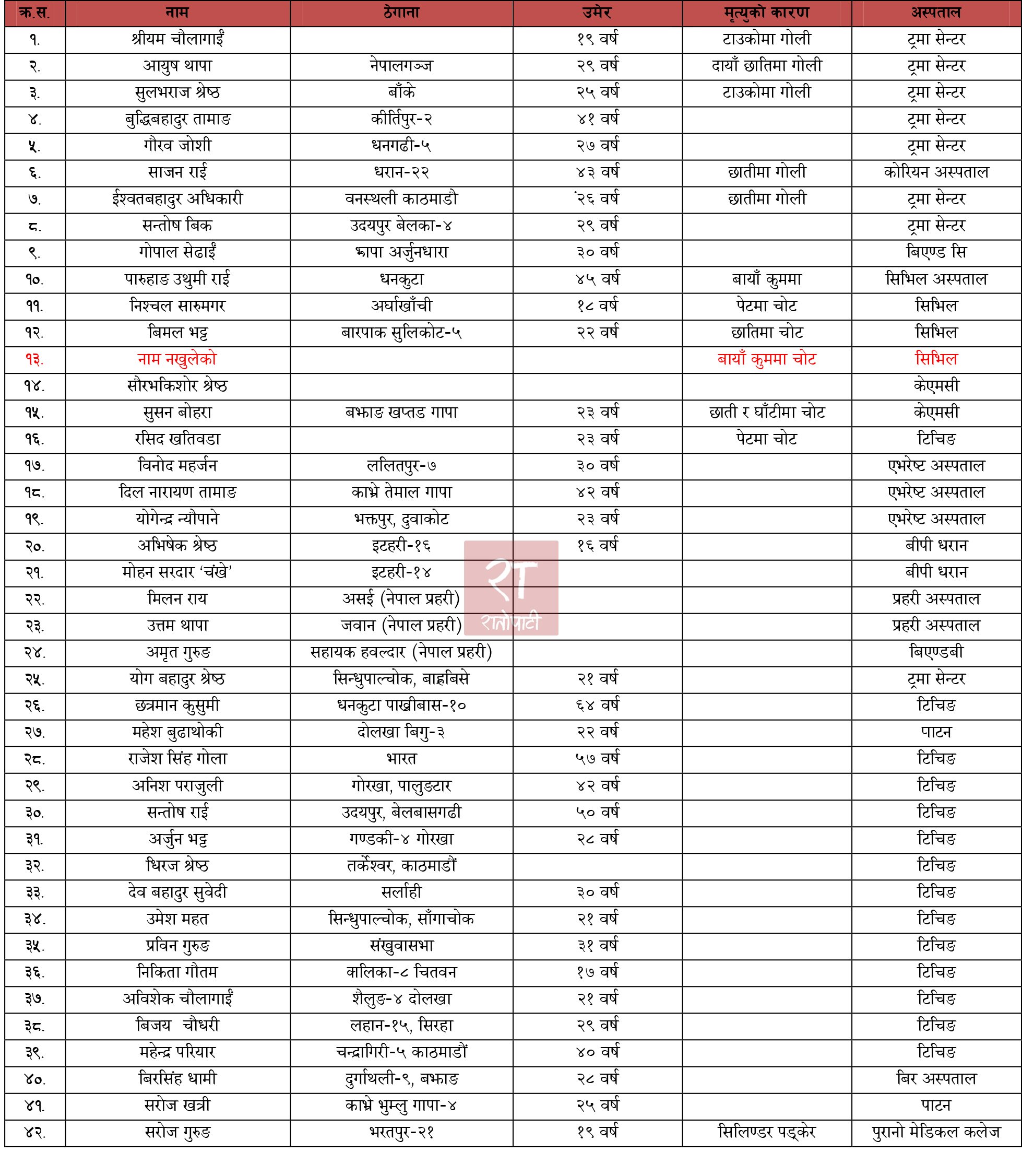 मृतकहरु मध्ये ४१ जनाको सनाखत ( नामावली सहित )