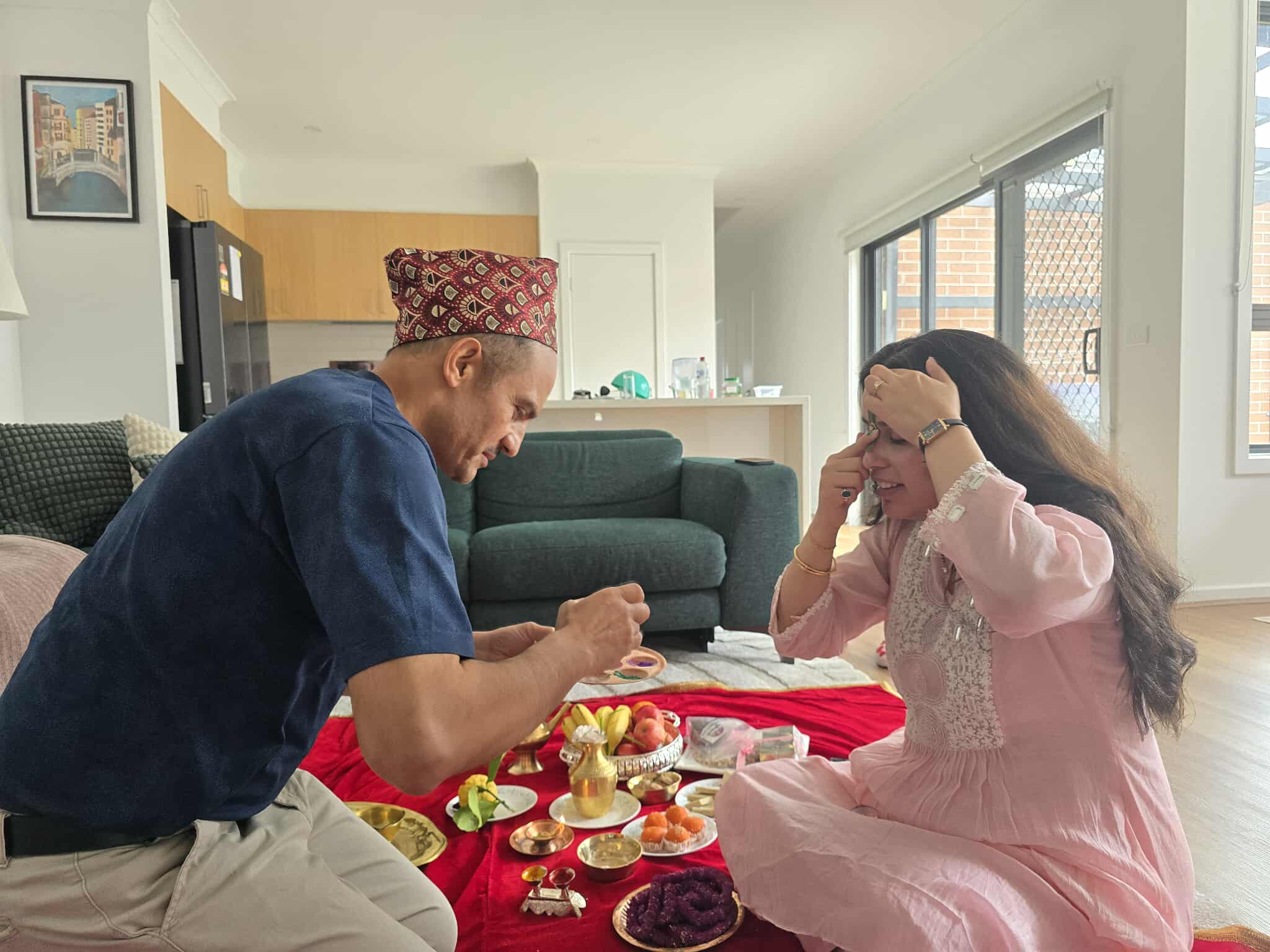 सिड्नीमा आफ्नो बैनी सुगम पराजुलीसंग टिका लगाउन पुगेका ओमप्रकाश पराजुलीले आफ्नो परम्परा र संस्कृतिको जगेर्ना गर्नको लागि पनि टिका लगाउन आँफु सिड्नीबाट मेलबर्न आइपुगेको बताए।