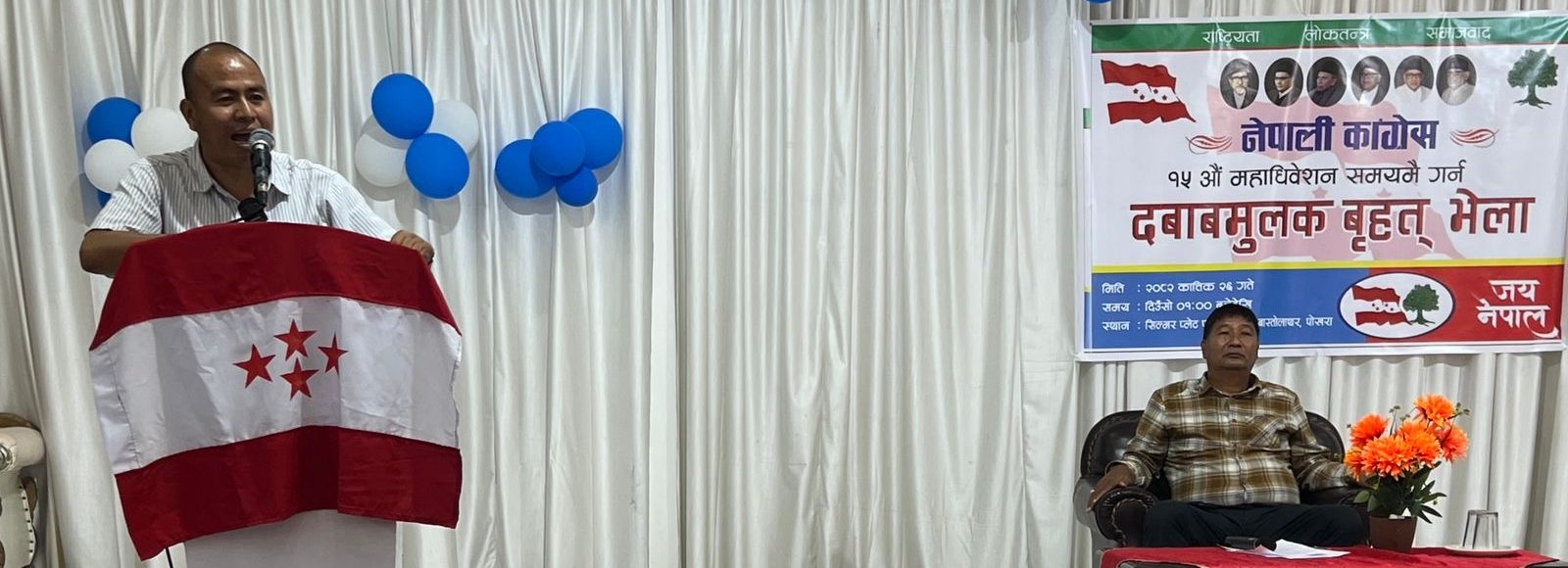 पोखरा, नेपाली काँग्रेस भित्र नियमित महाधिबेशन र बिशेष महाधिबेशनको बारेमा बिबाद चलिरहेको बेला पोखरामा बिशेष महाधिबेशनको बिरोधमा र नियमित महाधिबेशनको पक्षमा रहेका कांग्रेसका नेता कार्यकर्ताहरुको दवाबमुलक भेला सम्पन्न भएको छ।