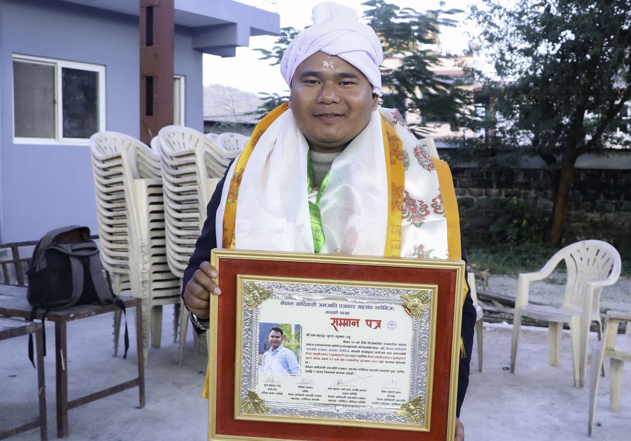 आदिवासी जनजाति पत्रकार महासंघ (फोनिज) कास्कीले आयोजना गरेको कार्यक्रममा फोनिजका संघीय सचिव एमबी आस्थामगरले उनलाई नगद र सम्मानपत्र सहित पुरस्कार हस्तान्तरण गरेका थिए ।