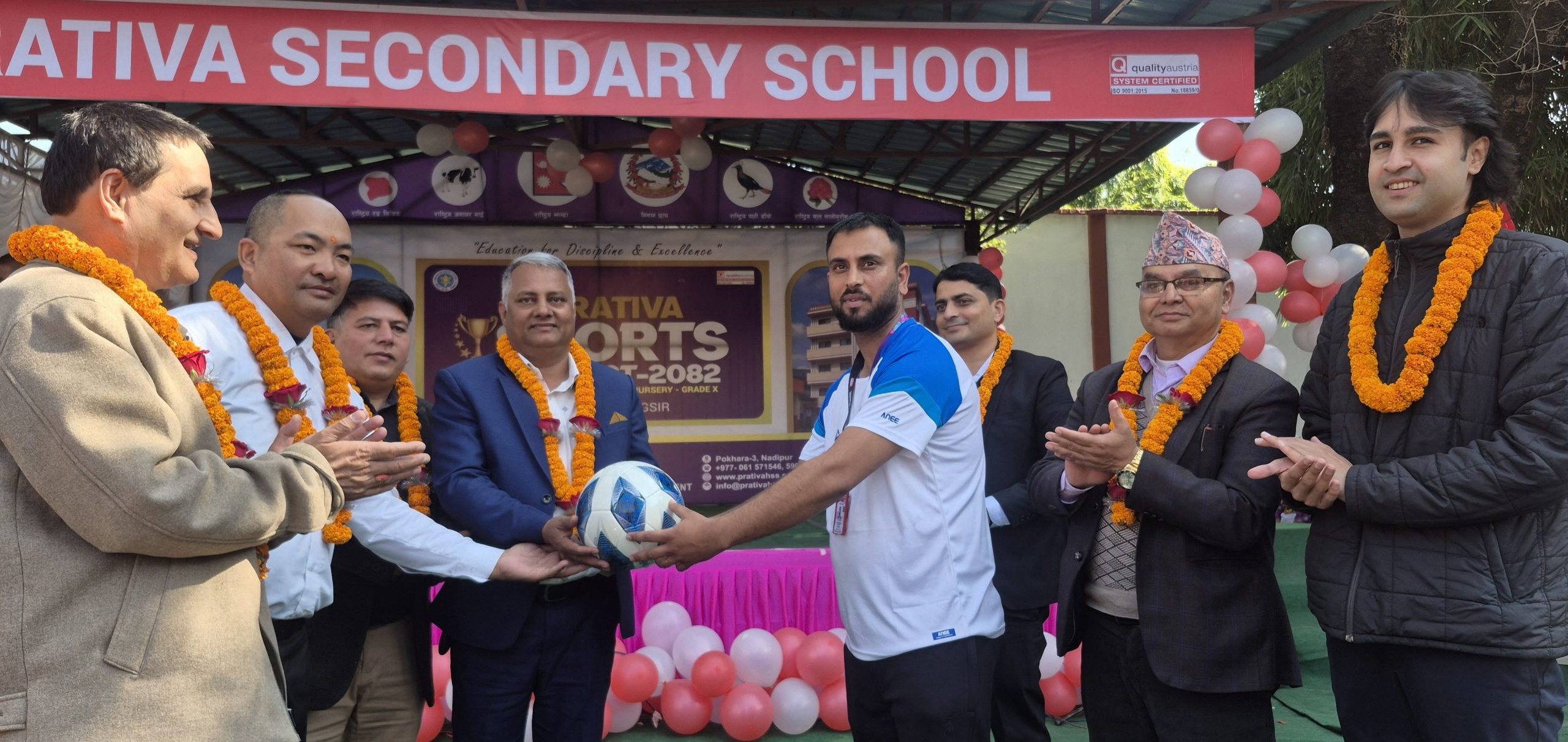 पोखरा, पोखराको नदिपुरमा रहेको प्रतिभा माध्यमिक विद्यालयको वार्षिक कार्यक्रम अनुसार स्पोर्टस् फेस्ट- २०८२ शुरु भएको छ । दुई साता चल्ने स्पोर्टस् फेस्टमा हरियो, रातो, पहेंलो र निलो गरी सदनात्मक रुपमा विद्यार्थीले प्रतिष्पर्धामा भाग लिनेछन् । विद्यालयका पूर्व प्राथमिकदेखि कक्षा १० सम्मका विद्यार्थीहरुले विभिन्न खेलहरुमा प्रतिष्पर्धा गर्नेछन् ।