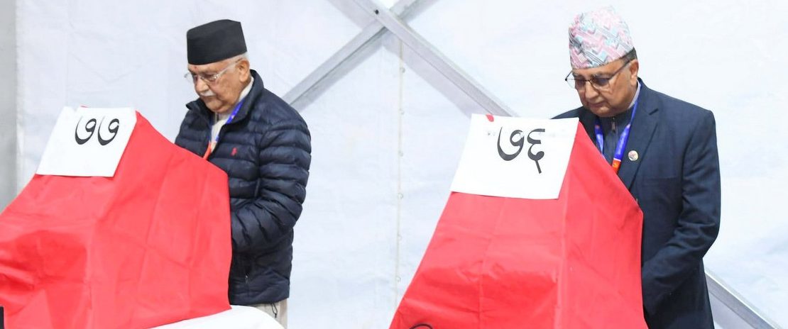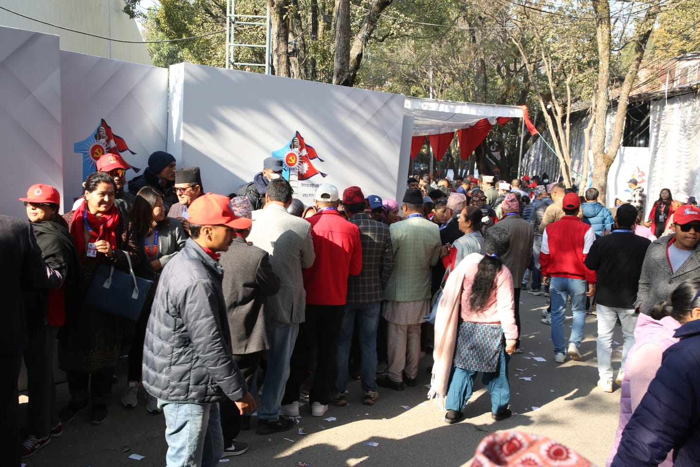 काठमाडौँको भृकुटीमण्डपमा अध्यक्षका प्रत्याशीद्वय केपी शर्मा ओली र इश्वर पोखरेलले मतदान गरेपछि अन्य प्रतिनिधिहरुले धमाधम मतदान गरिरहेका छन् । सुरुमा मतदान गरेका ओली र पोखरेललाई ४५ देखि ५० मिनट लागेको बताइएको छ । एकै पटकमा ५० जनाले मतदान गर्न मिल्ने गरि ठाउँको ब्यबस्था गरिएको छ ।