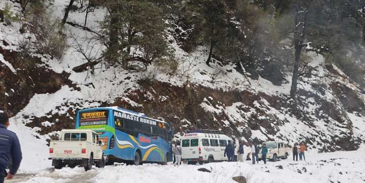 यसैबीच, हिमपातका कारण मध्यपहाडी लोकमार्ग अवरुद्ध भएको छ। गएरातिदेखि निरन्तर भइरहेको हिमपातका कारण रुकुम पूर्वको भुमे गाउँपालिका १ मा पर्ने लुकुम-पातिहाल्ना खण्ड अवरुद्ध भएको हो। लोकमार्ग अवरुद्ध हुँदा दर्जनौँ सवारीसाधनसहित यात्रुहरू अलपत्र परेको जिल्ला प्रहरी कार्यालय रुकुम पूर्वले जानकारी दिएको छ।